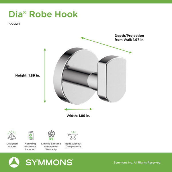 This four-piece bathroom hardware set is part of the contemporary and sleek Dia collection and consists of four wall-mounted bathroom hardware accessories: an 18-inch towel bar, toilet paper holder, robe hook, and hand towel ring. All pieces in this bath hardware set are constructed of brass and stainless steel and include wall-mounting hardware and instructions. The bathroom hand towel ring, towel bar, and robe hook are equipped to hold up to 50 pounds of weight if toggle anchors are used for fastening. The toilet paper holder is also wall-mounted and holds a single roll of toilet paper.
