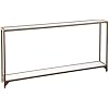 Add a touch of glam to any space with the shimmer of Gold and glass in this anywhere console. Simple, sleek silhouette with clear glass top shelf and white glass bottom shelf creates two tiers of storage, enhancing formal and casual spaces. Narrow metal and glass media console adds drama under your wall mounted TV. Create a memory vignette with photos and mementos on your sofa table, or shine A spotlight to a focal wall. This slim anywhere console stops the show in your home.