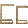 Bring home style and functionality with this nesting C table set. Woven water hyacinth creates a coastal feel while the minimalist design keeps your living space uncluttered. Tables conveniently store nested together when you need to save space or easily pull apart when you need an extra tabletop. Add a natural element to your home when you place these glass top nesting tables in your living room or open concept living space. Natural variations in water hyacinth will occur, giving each table a unique look