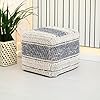 Product Summary: SIMPLIHOME Grady Square Pouf - 18 inch Wide Wool and Cotton Handloom Woven Ottoman in Blue and Natural, Contemporary Footstool or Extra Seating for Living Room with Polystyrene Bead Filling, Assembled
