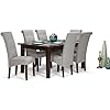 When looking for that perfect solution for your dining needs, you look for style, space and functionality. The Cosmopolitan 7 piece Dining Set meets your entertaining needs. The set is comprised of the Eastwood 66 x 40 inch Solid Rubberwood Hardwood Rectangular Dining Table and 6 Cosmopolitan Parson Dining Chairs. Extra large and in a dark Java Brown wood color, the Cosmopolitan Dining Set makes your dining room or breakfast nook comfortable and inviting and adds a touch of style to your home; Efforts are made to reproduce accurate colors, variations in color may occur due to computer monitor and photography; At Simpli Home we believe in creating excellent, high quality products made from the finest materials at an affordable price. Every one of our products come with a 1-year warranty and easy returns if you are not satisfied