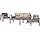 This set perfectly exudes a modern feel to any outdoor living space. With its unique and eye-catching design this set offers taste and functionality to your outdoor space. The combination of natural and industrial looking elements compliments any style of décor and the aluminum and water resistant cushions make this set an immediate statement. Featuring enough seating for 5.