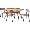 Christopher Knight Home Nissie Mid-Century Wood Dining Set with Fabric Chairs, 5-Pcs Set, Dark Grey / Natural Walnut Finish