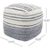- DIMENSIONS: Choose an accessory that is the perfect size for you and your furniture. This pouf is 16.00” W x 16.00” L x 16.00” H. You will love how much your space can transform with the simple addition of this charming pouf.