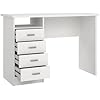 Product Summary: Tvilum 4-Drawer Desk, Modern White Office Writing Desk with Storage, Compact and Functional Desk for Home or Office