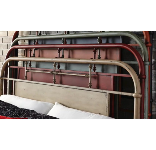 Vintage style is given an industrial feel in this platform bed. It's crafted from metal and features turned spindles, a curved headboard and footboard, and a metal center panel. All-over distressed details add a well-worn touch. This bed frame is compatible with an adjustable bed and has center legs that provide additional stability. Plus, since it's available in a variety of finish options, it's easy to get just the right look to fit your space's style and color palette. To complete your bed, add the box spring and mattress of your choice (both sold separately).