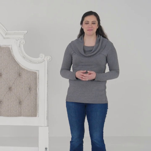 Add this headboard to your current bedroom ensemble and make it the centerpiece of your room. It's made from solid and engineered wood, and it features a beige finish with distressed details, scrolling accents, and an arched silhouette for a French country look. The central panel features chenille tweed upholstery with button tufting for a look that complements its farmhouse feel and gives you a padded spot to lean against while you get in a little late-night reading. Pre-drilled holes allow this piece to mount to your bed frame with mounting hardware included. Hand-curated by one allium way