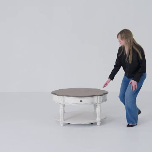 Coffee tables are living room icons. They’re ubiquitous in all interior designs and come in a seemingly endless amount of styles. Take this coffee table for example: with an antique-inspired design, it is perfectly suited for rustic aesthetics. Crafted from solid and manufactured wood. It features a bottom shelf, and drawer, for concealed and display storage.
