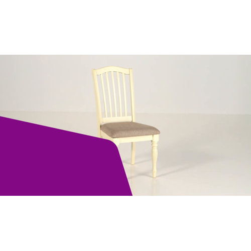 This set of two side chairs brings a touch of farmhouse charm to your dining room or kitchen. Crafted from solid and engineered wood, these chairs feature a light cream finish that pairs beautifully with the gray linen upholstered seats. The slat-back design with an arched cap rail and turned-fluted front legs adds a classic touch to your space. Plus, the plastic glides on the feet help protect your floors from scratches. These chairs are a versatile addition to your home, offering comfort and style for your dining experience. Spot clean with a dry cloth to keep them looking fresh.