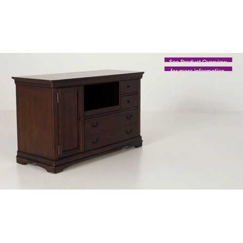 This credenza desk combines a classic look with plenty of handy storage. It's crafted from solid and engineered wood with a rustic cherry finish that reveals a distinctive natural grain for added character. This desk also gives ample room for storing and organizing WFH essentials: Four dovetailed drawers on ball-bearing glides and one cabinet with traditional metal hardware. An open shelf is just right for your printer, while a convenient wire management system keeps cords corralled. And, at 53" wide and 22" deep, this desk is great for home offices and living spaces.