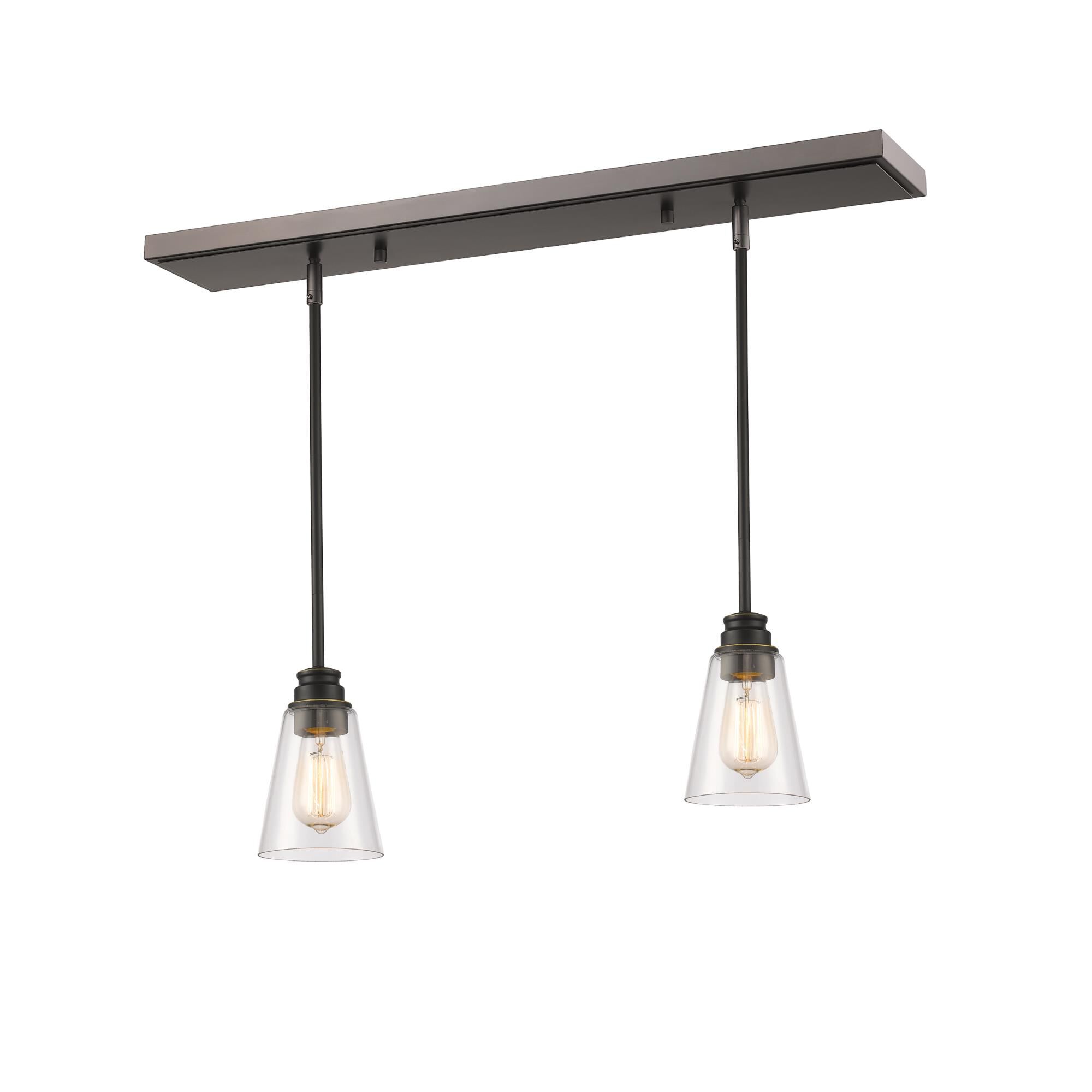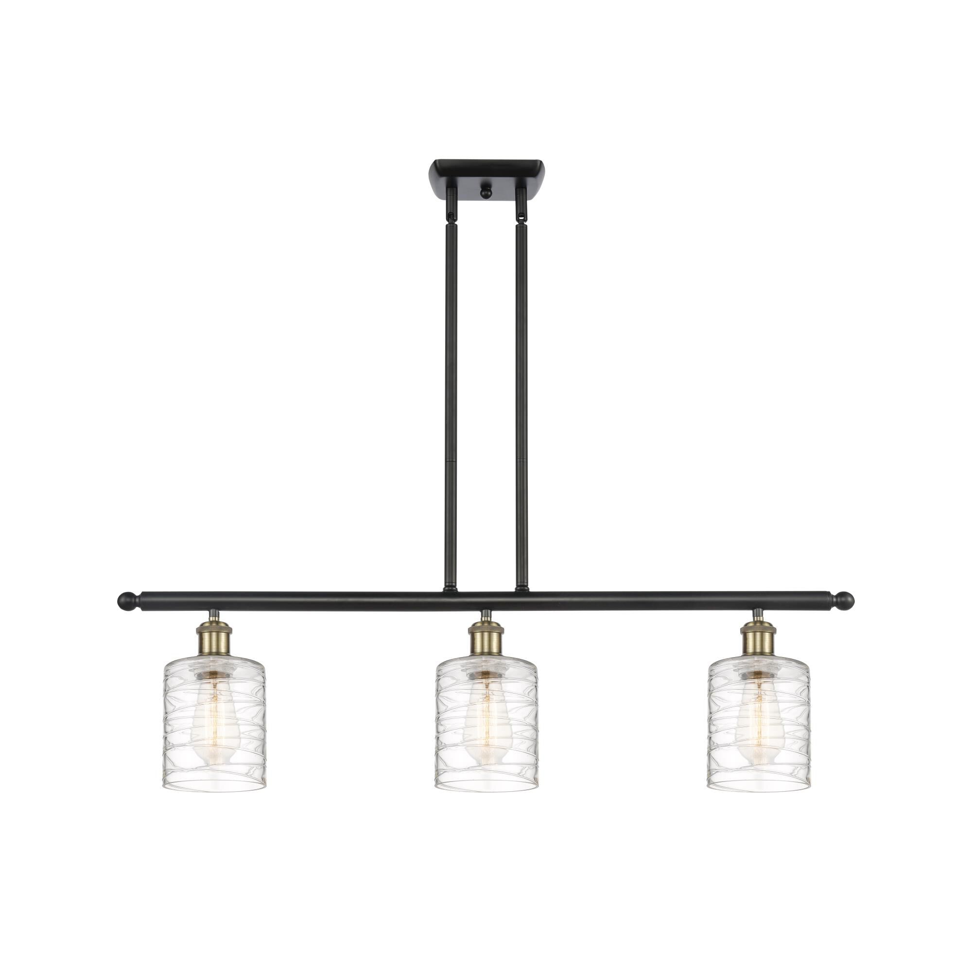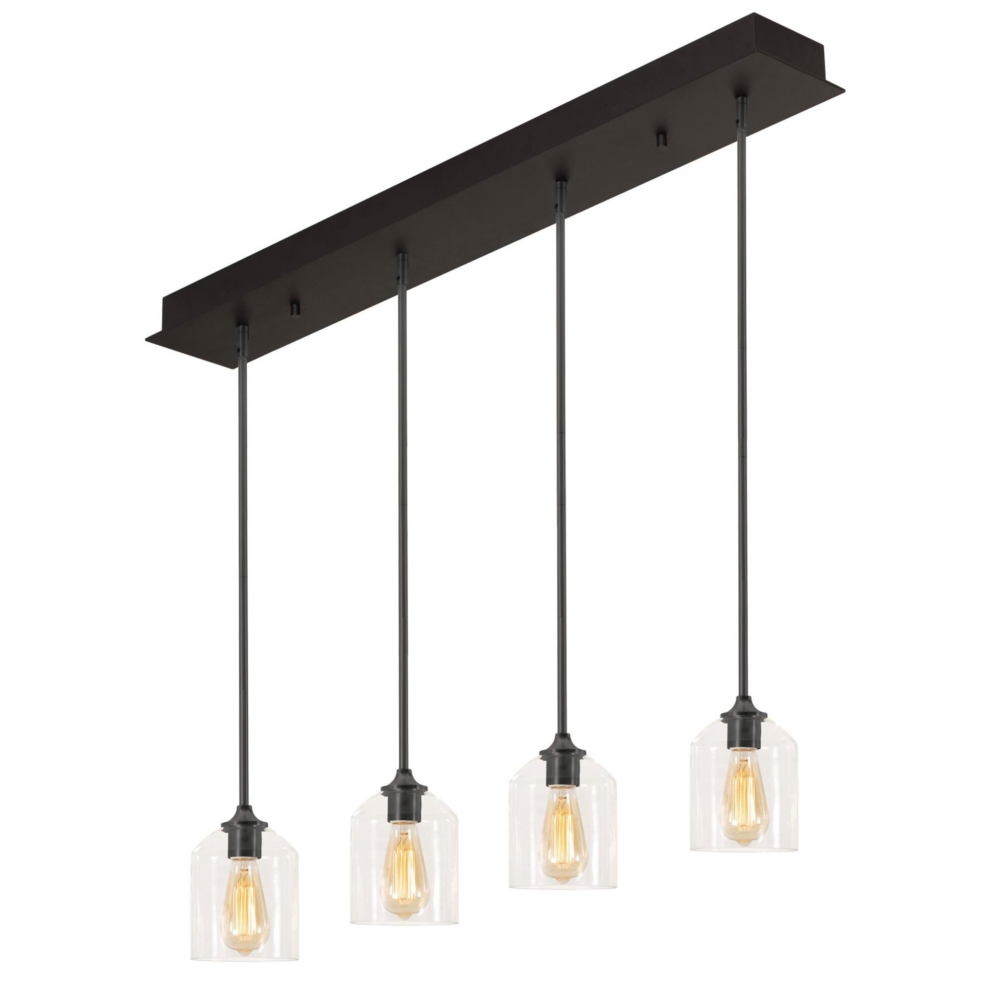 Finished in brushed nickel this vintage three light fixture is paired with clear glass shades to compliment any dcor. The simple vintage styling of this fixture would be perfect for the game room, or any other room of the house where a touch of vintage class is needed. For convenience, the vintage bulbs are included with the clear glass fixture.