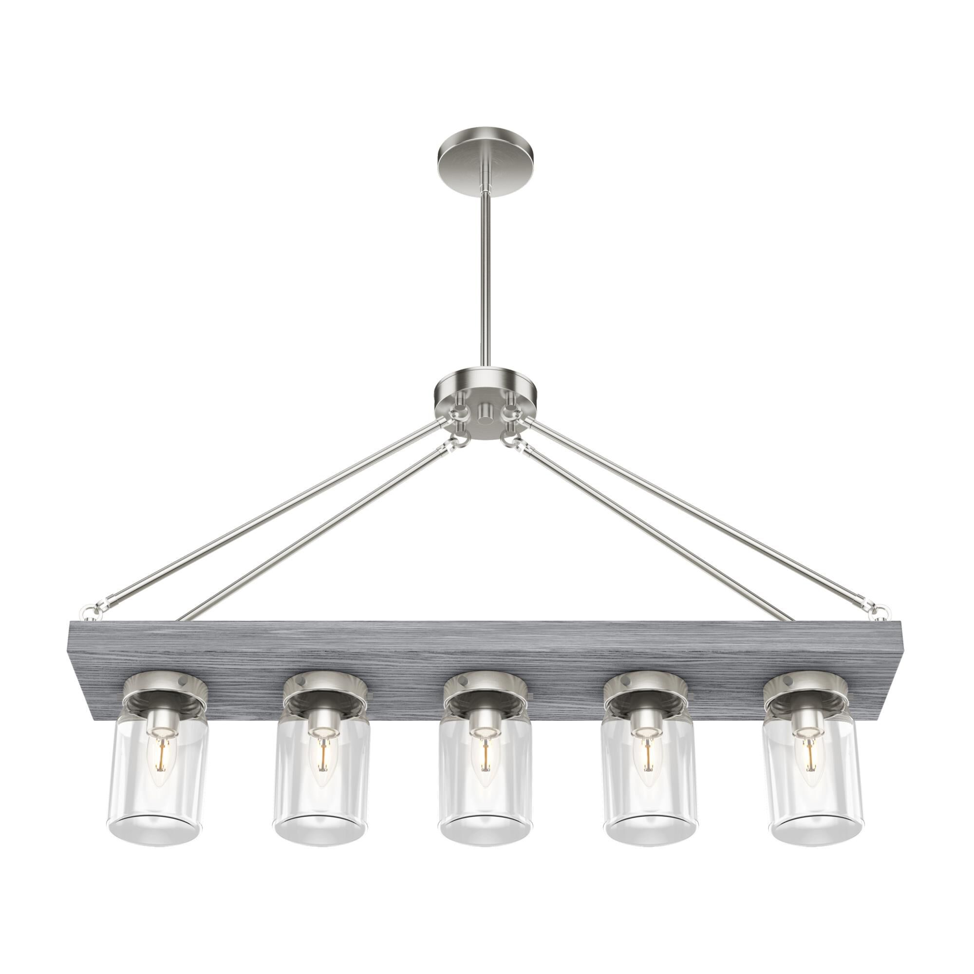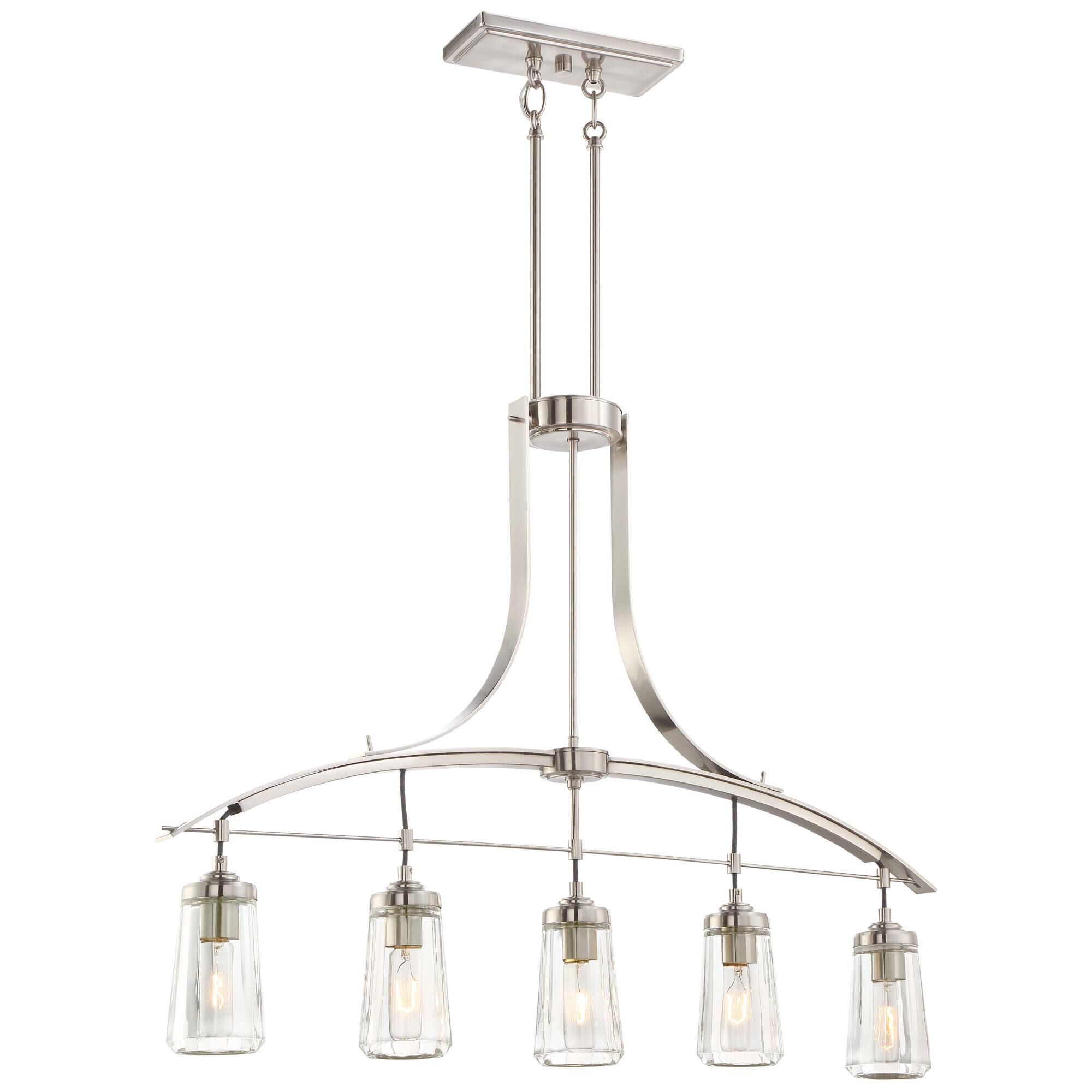 Rich in contemporary style yet boasting a distinct industrial flavor, this eight-light island pendant creates a compelling look in modern spaces. Gorgeous foundry brass finish steel hardware-inspired elements bring out the beauty in sleek cylindrical glass shades, creating an easy ambiance.