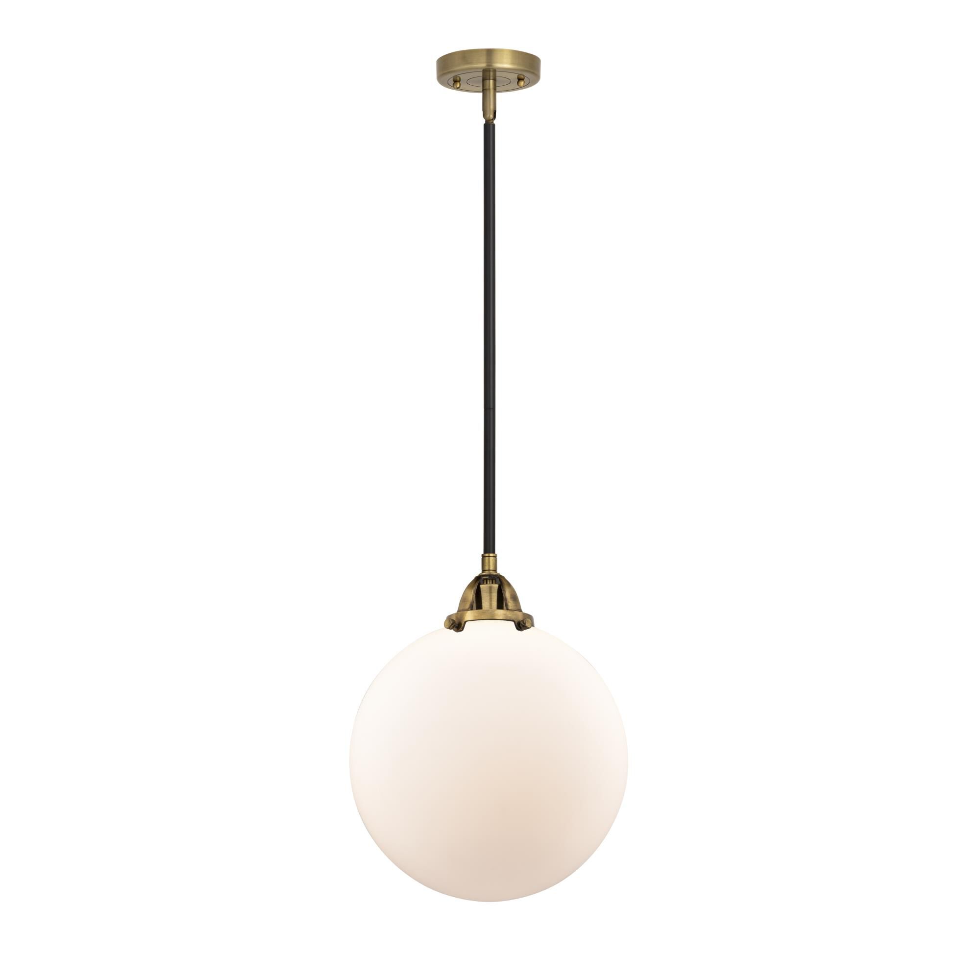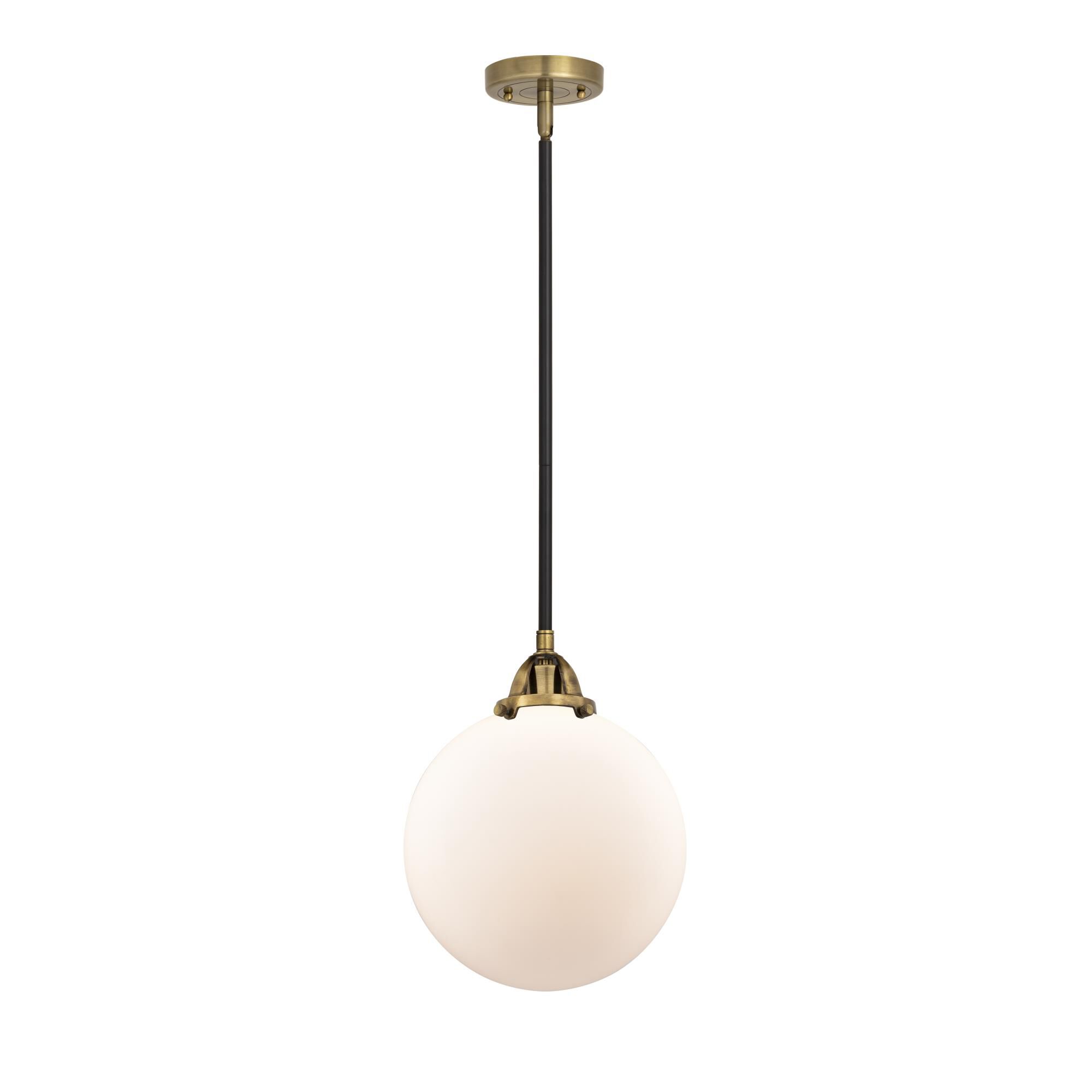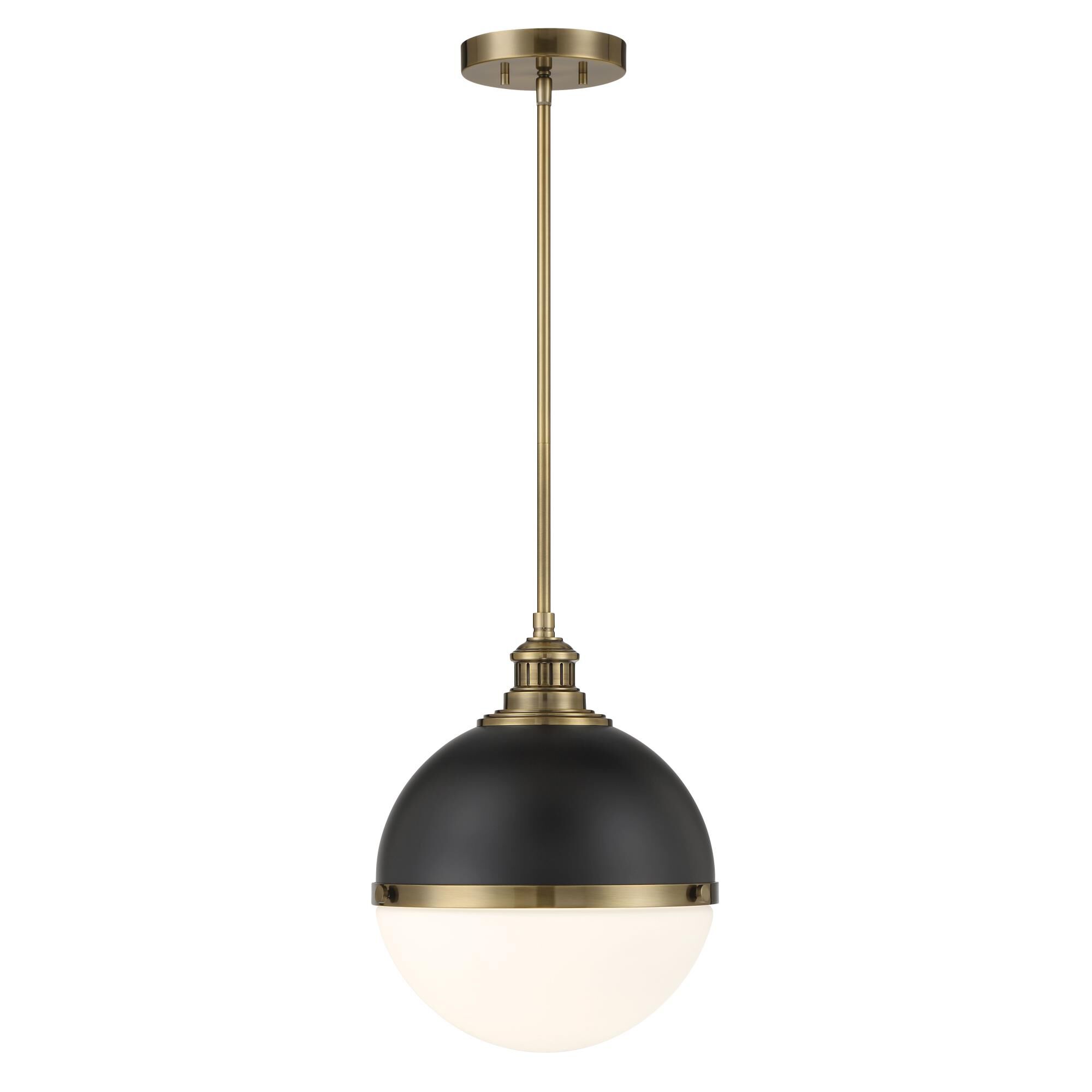 Intriguing in a globe silhouette, this classic pendant lamp is a dramatic addition over an entry or in a kitchen. The pendant boasts an antique nickel finish over the top half of its shade, creating a familiar dome effect, with an opaque diffuser for soft, lovely illumination.
