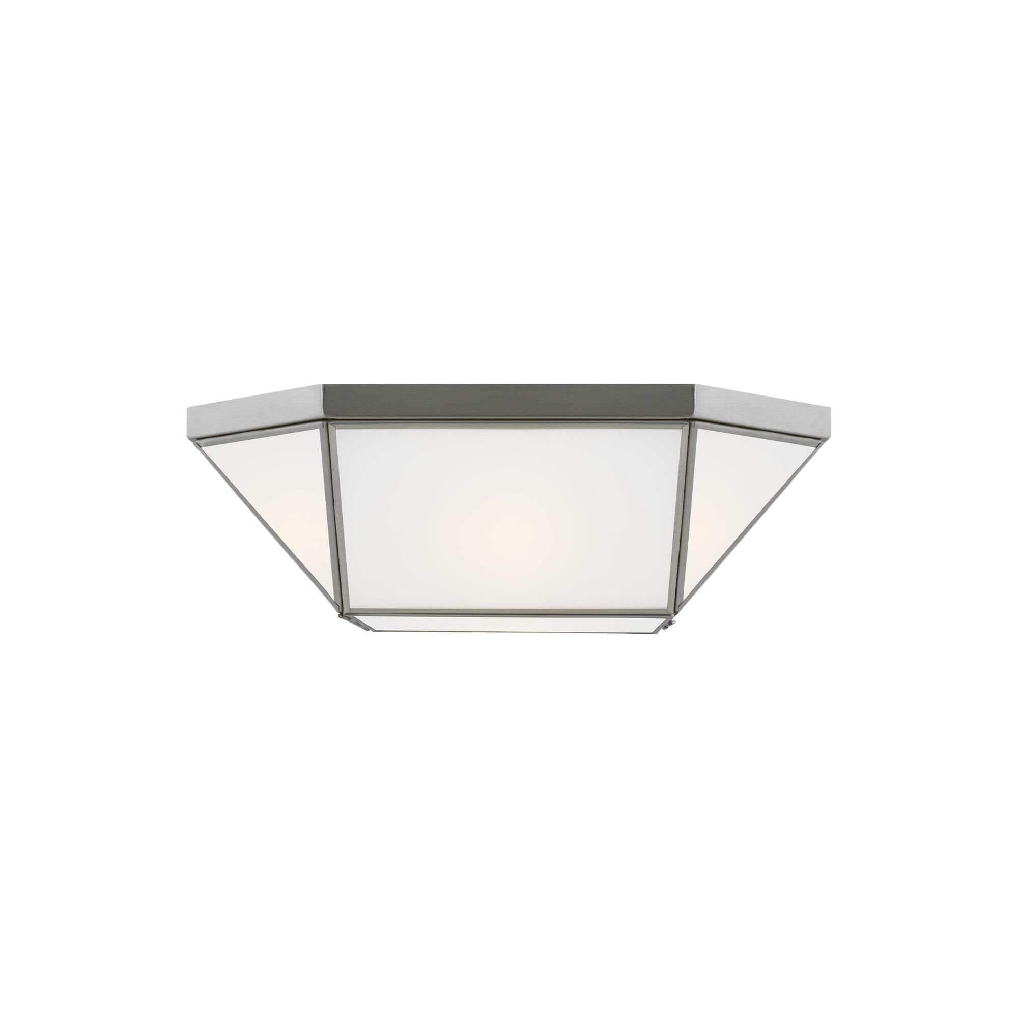 Full of clean lines, this two-light ceiling light features a geometric silhouette. Brushed nickel streamlines the open square-like frame.