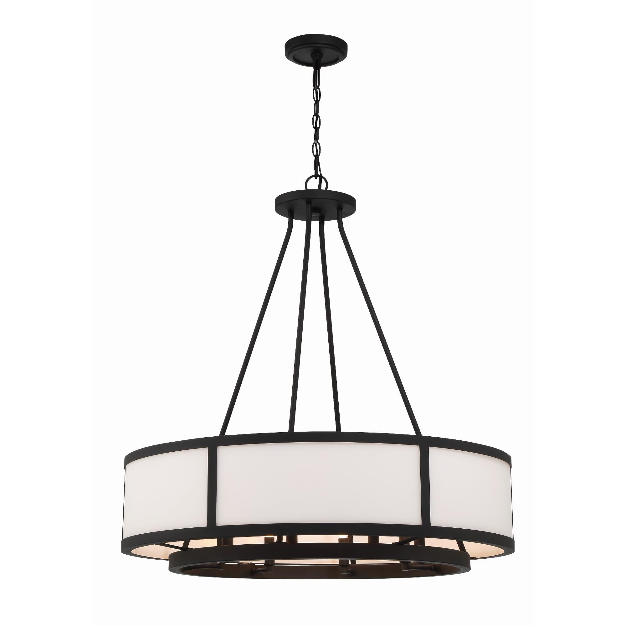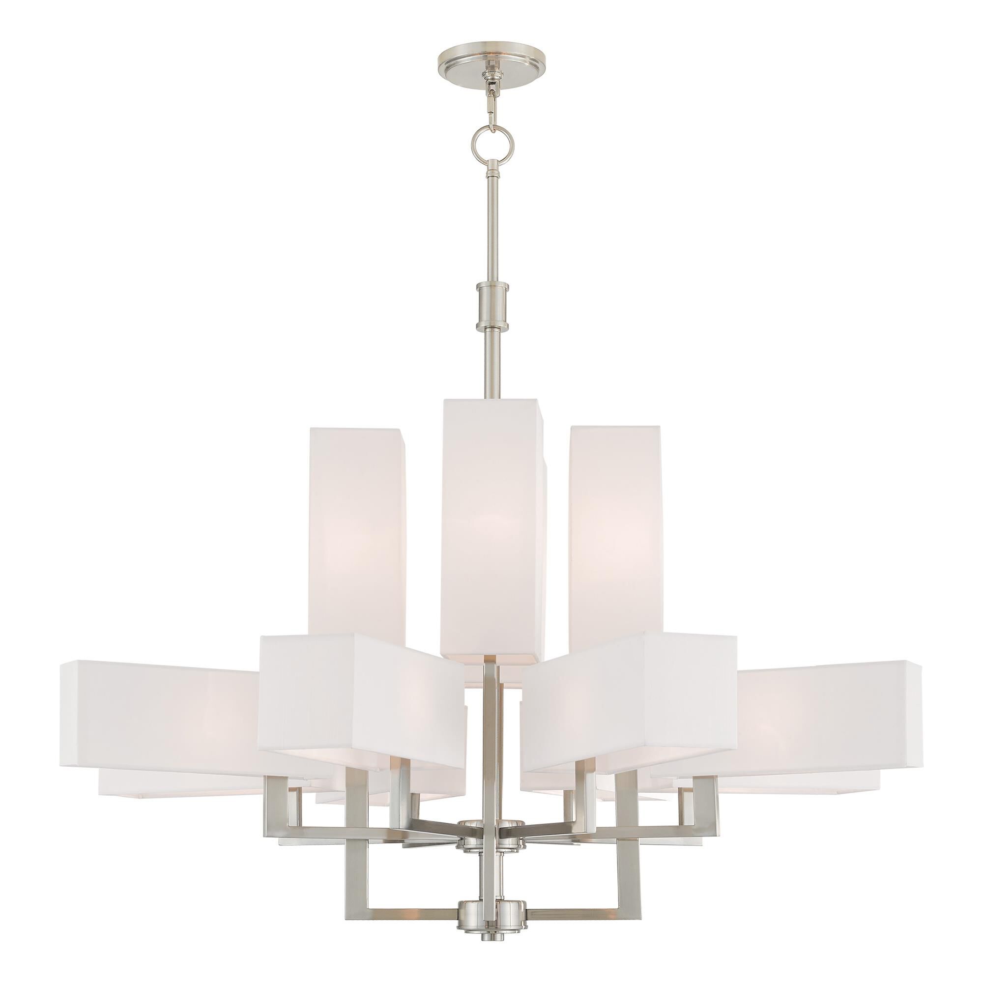 Illuminate your living space with the alluring glow of this elegant, eight-light pendant. With a versatile design that works well in almost any room, this sophisticated fixture blends a brushed nickel frame with a soft, white shade for beautiful ambiance.