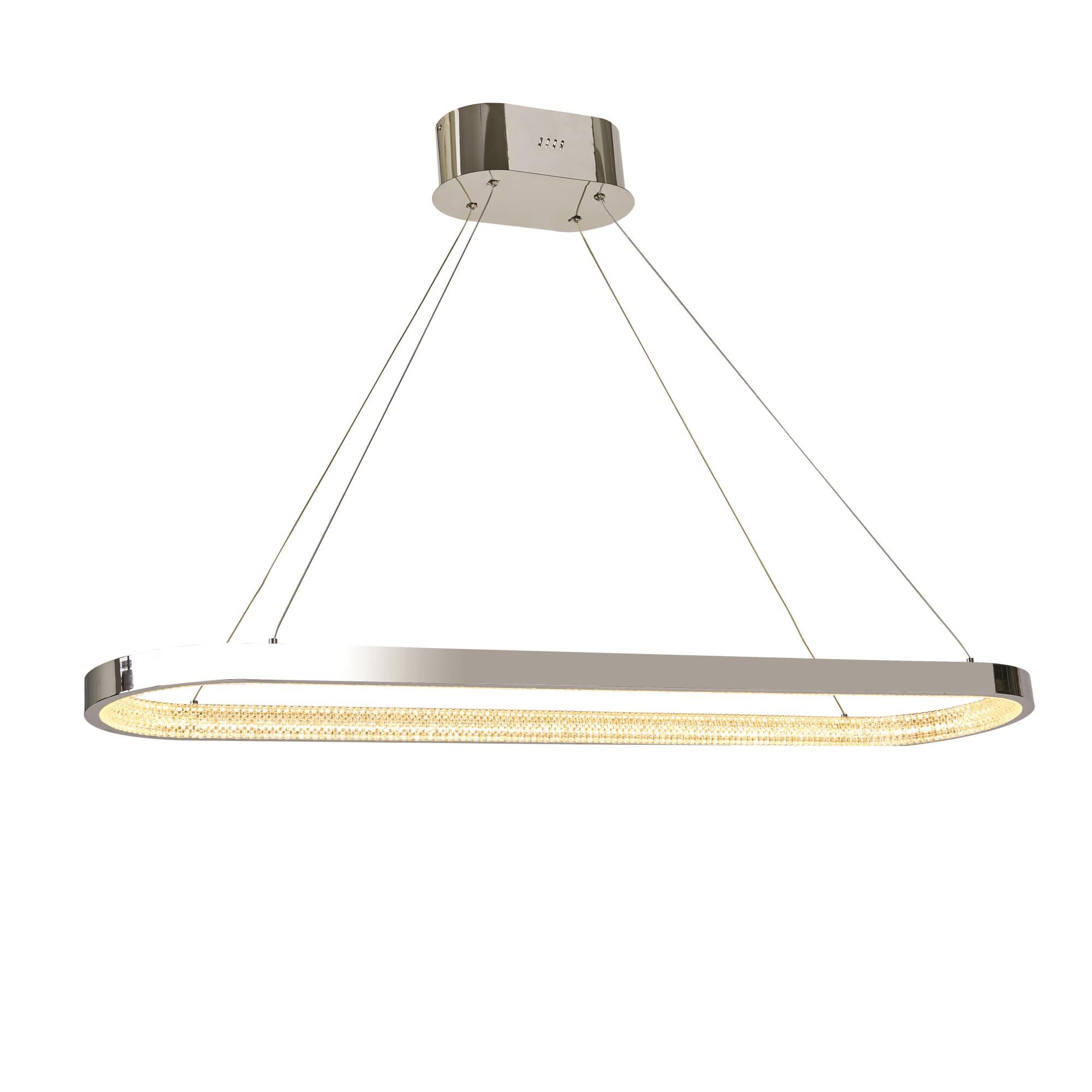 Modern and energetic with a hint of artistic style, this brushed nickel steel one-light chandelier is a perfect complement to a compact bar or island space. Its symmetrical geometric silhouette creates a visually captivating form, and updated integrated LED technology allows for energy-saving efficiency.