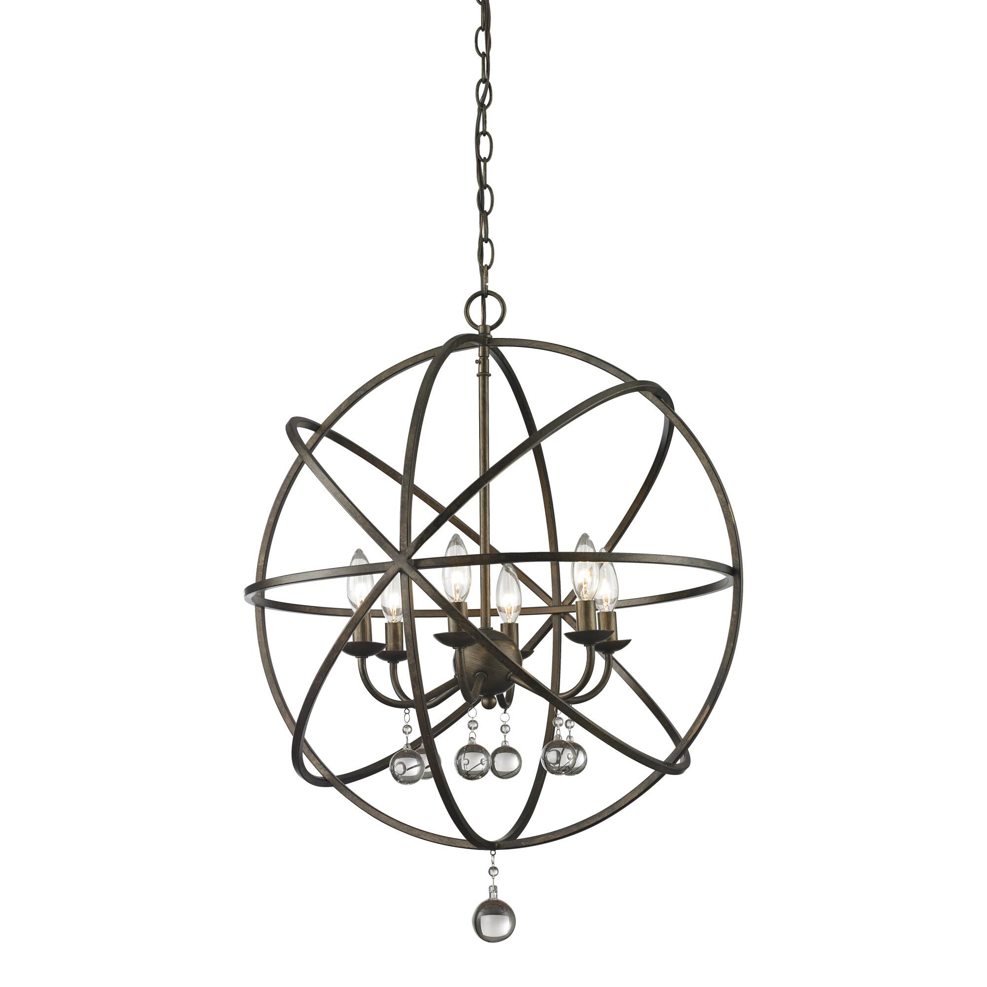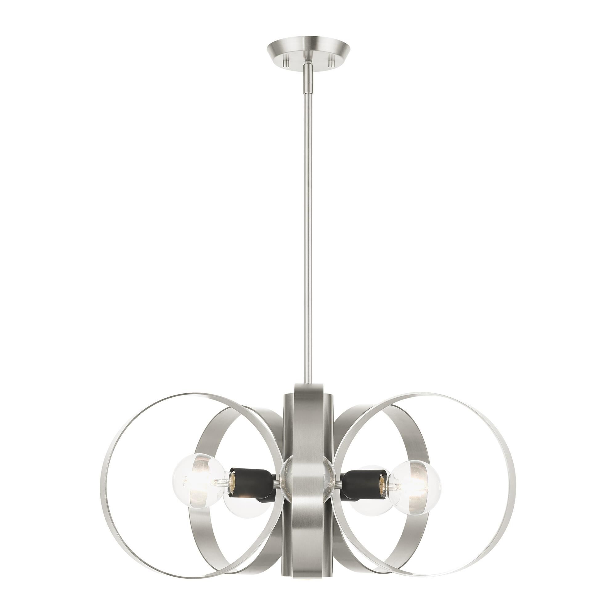 Add a dynamic touch to a dining or living space with this intriguing hammered black and chrome finish eight-light pendant light. Enjoy a modern-inspired orb shape formed with flat iron ribbons, and a romantic collection of candelabra-style bulbs hosted in a chrome finish bulb base.