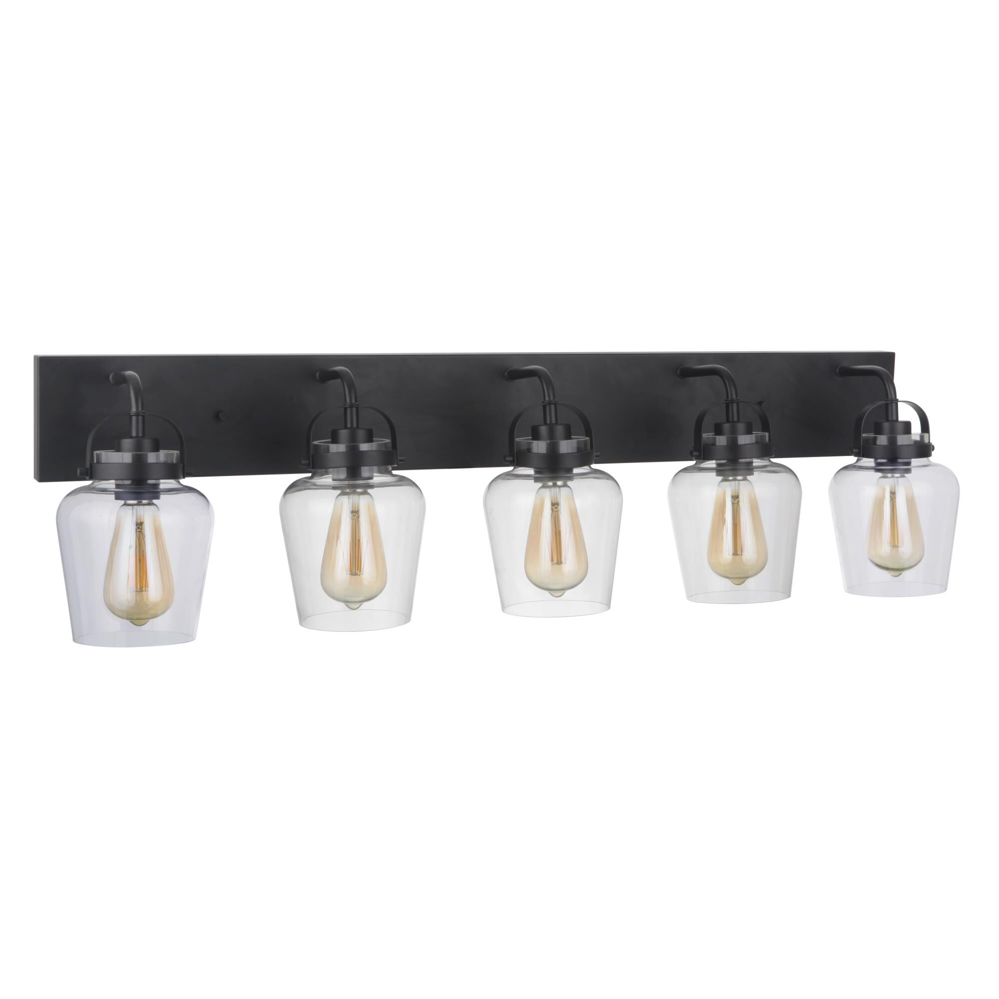 With a combination of finish styles, this four-light bath light transforms spaces with modern elegance. Tones of matte black and brushed nickel marry to create a bold visual.