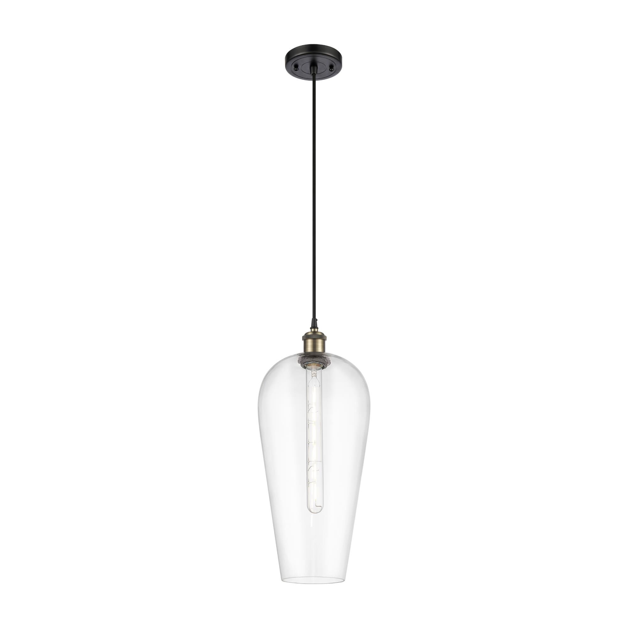 Alluring, sensual curves offer a graceful aesthetic that illuminates a transitional space with romantic charm. This one-light pendant creates an enticing silhouette with an oversized glass shade and a Brushed Nickel finish holder suspended from a black braided cord to a metal mounting bracket showing off a bold Matte Black finish.