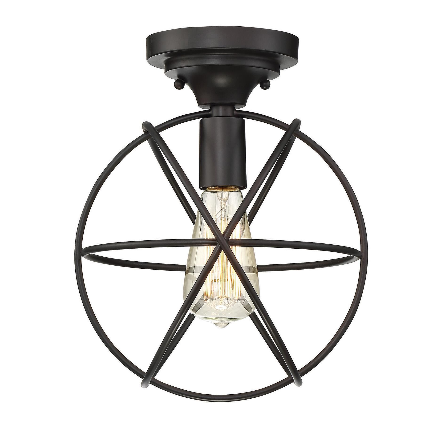 The stylish design of this two-tone one-light flush mount light will dazzle your senses. It features a matte black and brushed nickel finish in a crisp round design highlighted by a series of overlapping X-cross patterns. This light brings a dynamic element to any hallway, foyer, dining room, or living room.