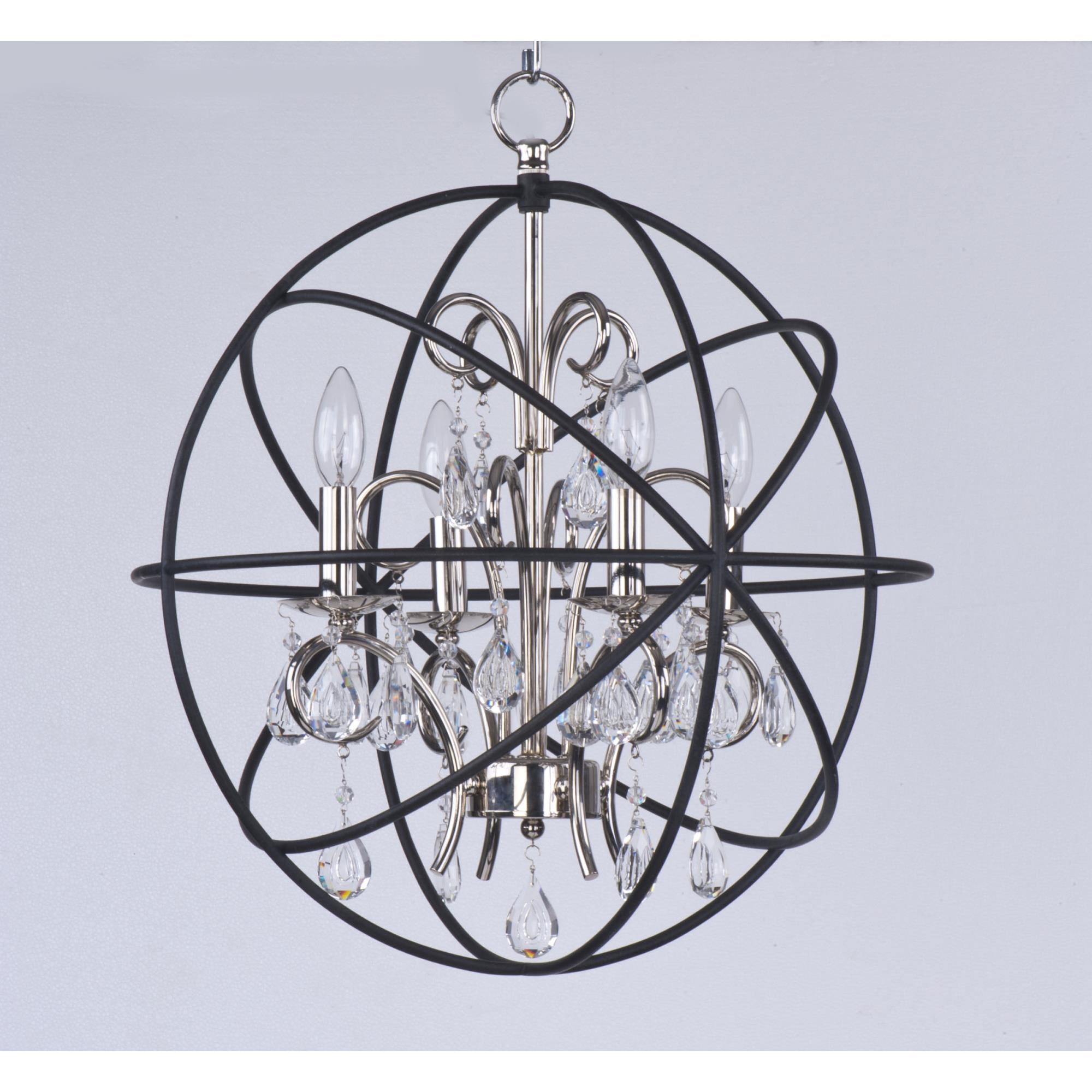 Orbiting metal bands circle the contemporary inner chandelier. This family is made up of round and oval shapes finished in brushed nickel and complimented with matte opal glass.