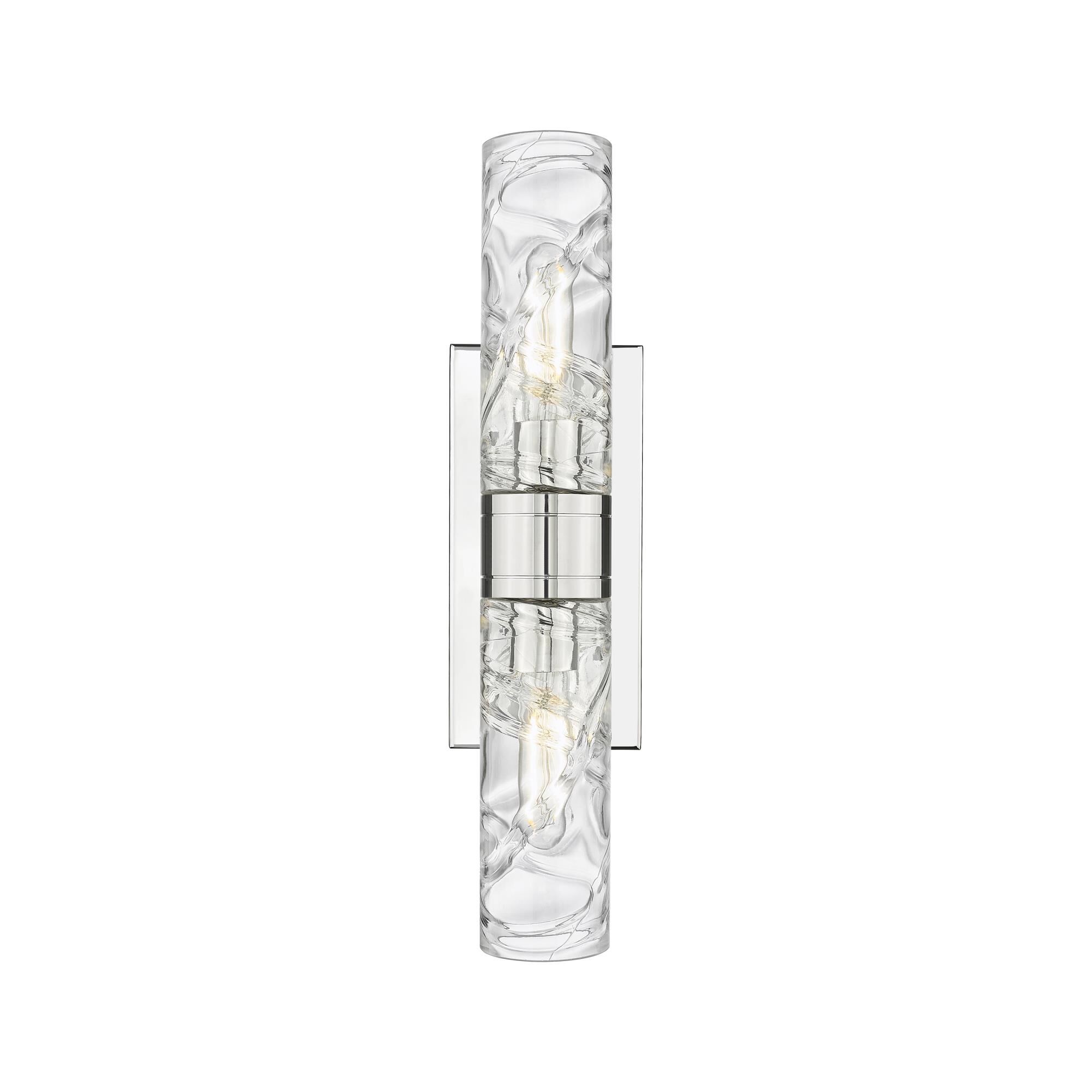 A contemporary space receives the ultimate in glamour and style with this unforgettable chrome and crystal three-light vanity light. Accentuate a custom bath space with a luscious fixture featuring cut-out rectangles and crystal emblems, and send a strong message reflecting upscale signature style.