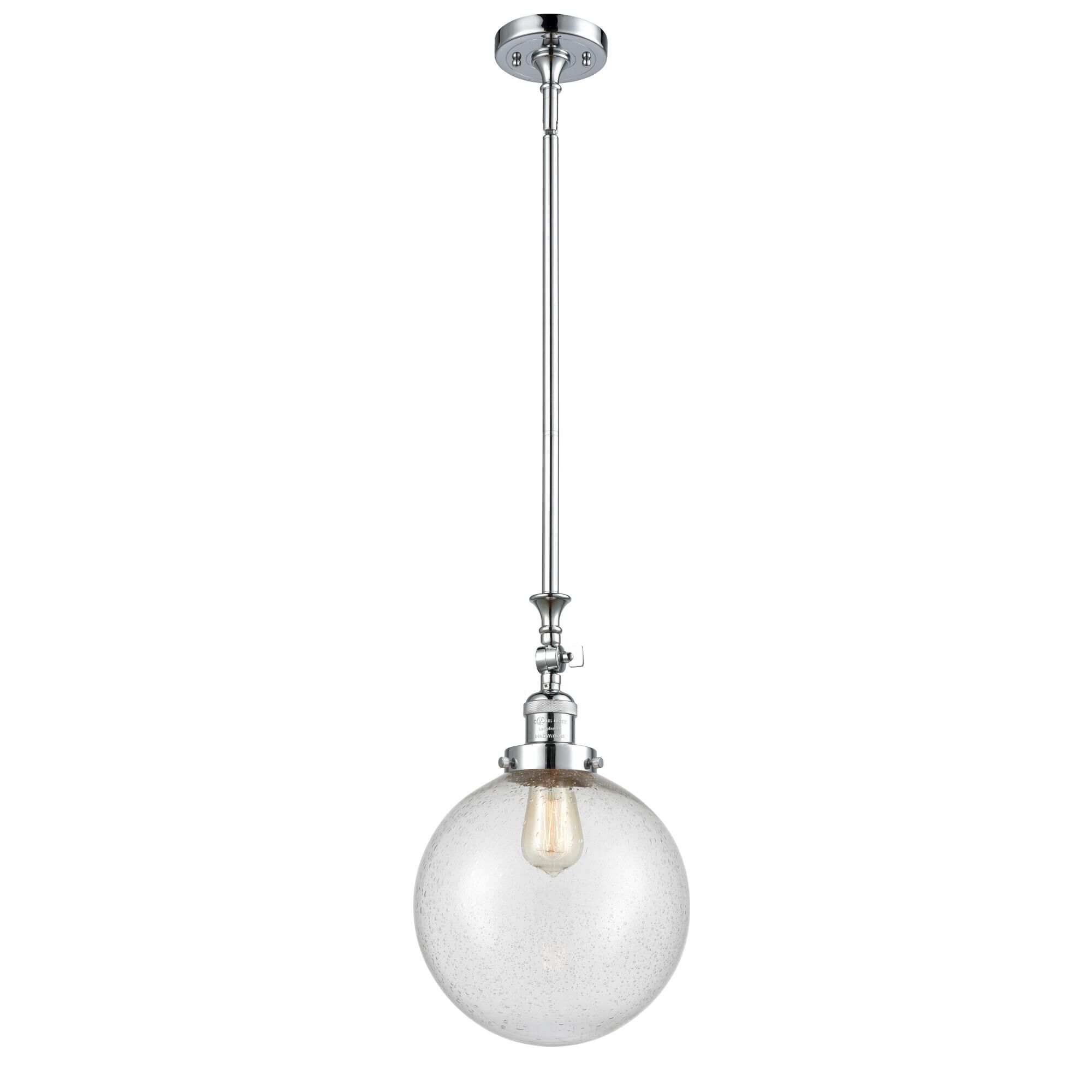 Gorgeous mouth blown glass and a starry night finish in silver are a potent combination for this orb pendant. Beautiful over a breakfast nook or in the entry, this pendant delivers engaging texture and color while casting lovely downward illumination.