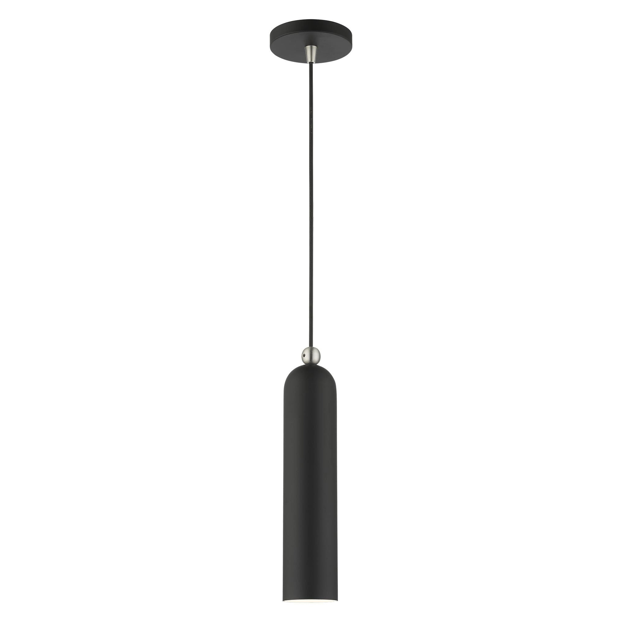 Celebrate elongated modern style with the tube-like shape of this hanging pendant light. Streamlined and stylish, the sleek silhouette boasts a radiant brushed nickel finish.