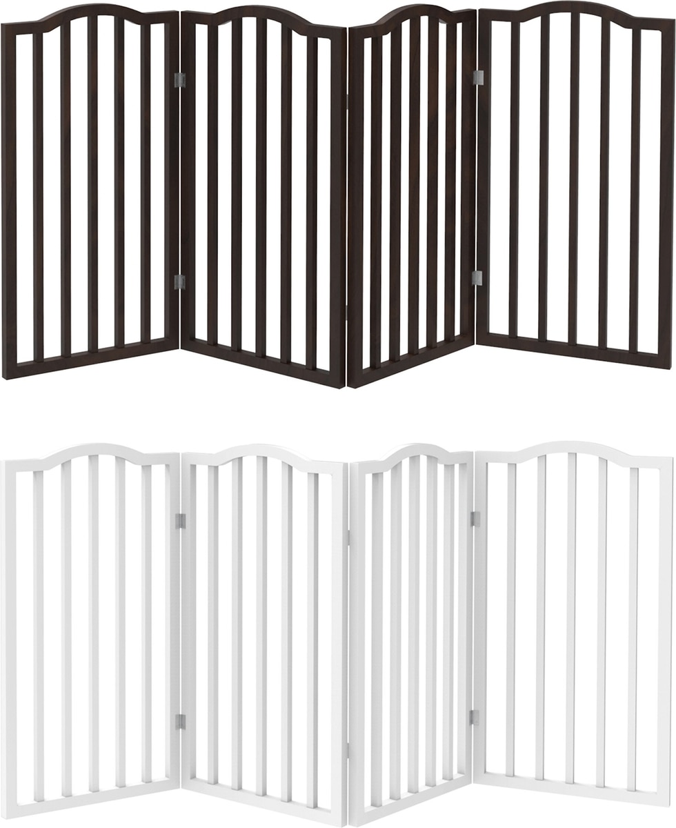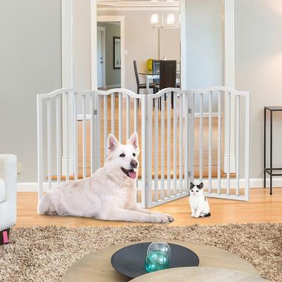 - 4-panel pet gate will confine your dog, cat or puppy while you are away and folds down for compact storage.