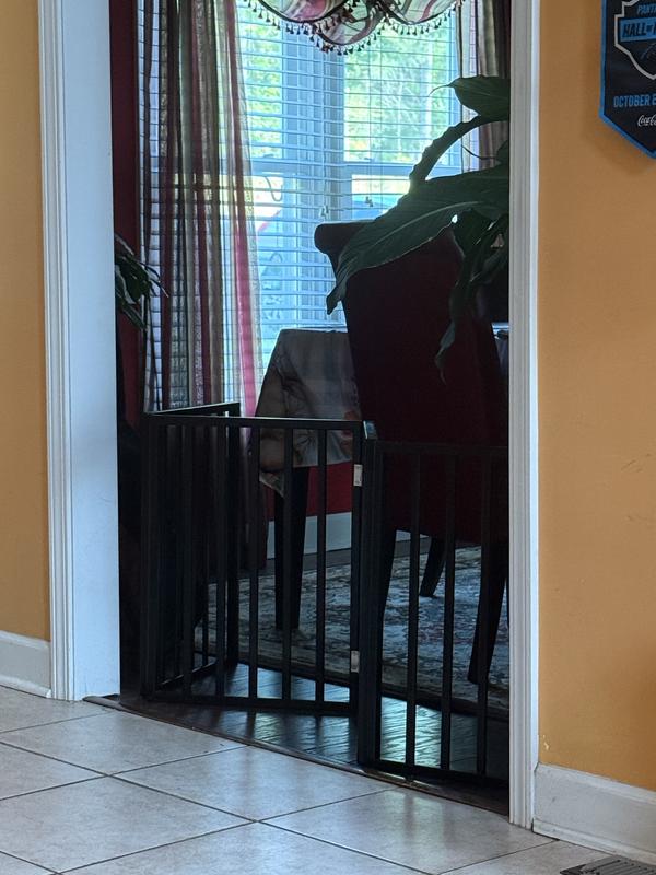 - This dog gate helps limit your pet's access to certain parts of the house, while maintaining a modern appearance to complement any home decor.