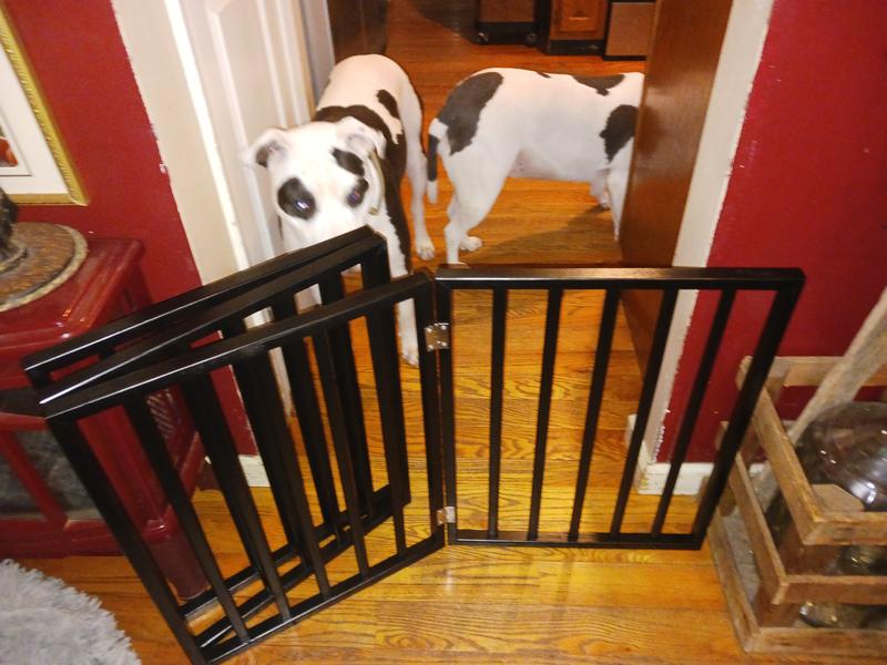 Love that these are easy to set up, remove and store. Bought these to block off my garage entrance to allow my dog to be in the garage with me with the garage door up. My neighbor saw them up and gave me a great idea to buy some five dollar pinch guards from a popular online store to hold and make the connections stable in case my little dogs jumps on the gate. Great idea! I recommended the gate and I’m very pleased with the purchase.