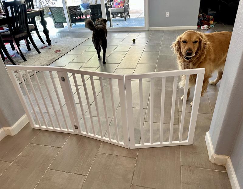 - DealPawland Freestanding Foldable Wooden Dog Gate, White, 4 Panel$69.95 Chewy PricePromo, Spend $100, Get $30 eGift Card with code HAVEFUN +1 deal