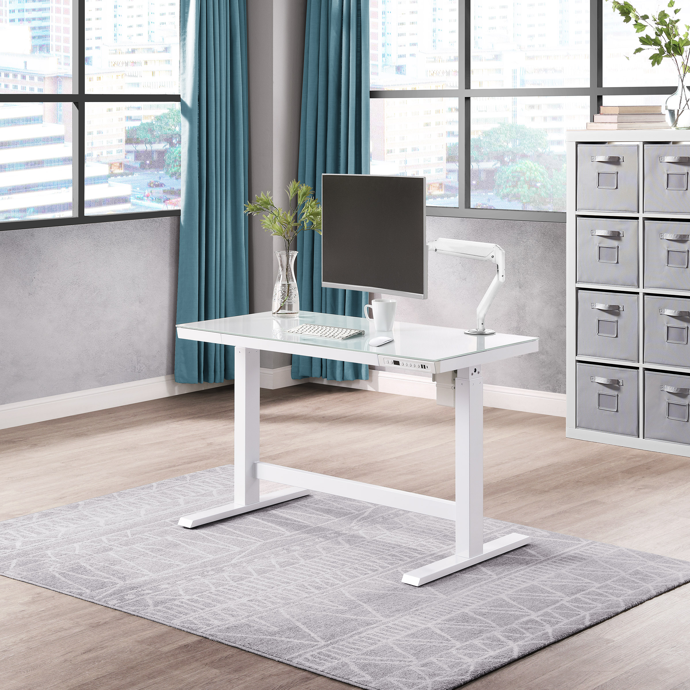 The Ascencia 47" Height Adjustable Desk helps improve posture, energy and productivity in all environments. A built-in motor adjusts the desk height from 29.6 inches to 46.9 inches with four programmable height settings. This allows you to easily switch to a more comfortable position, whether sitting or standing. Avoid accidental height adjustments with the height lock feature. The Ascencia comes with fast-charging USB ports and a drawer for books, notes and pens; everything you need to get your job done, effortlessly. Accessories not included. Includes: 1 Desk Features: