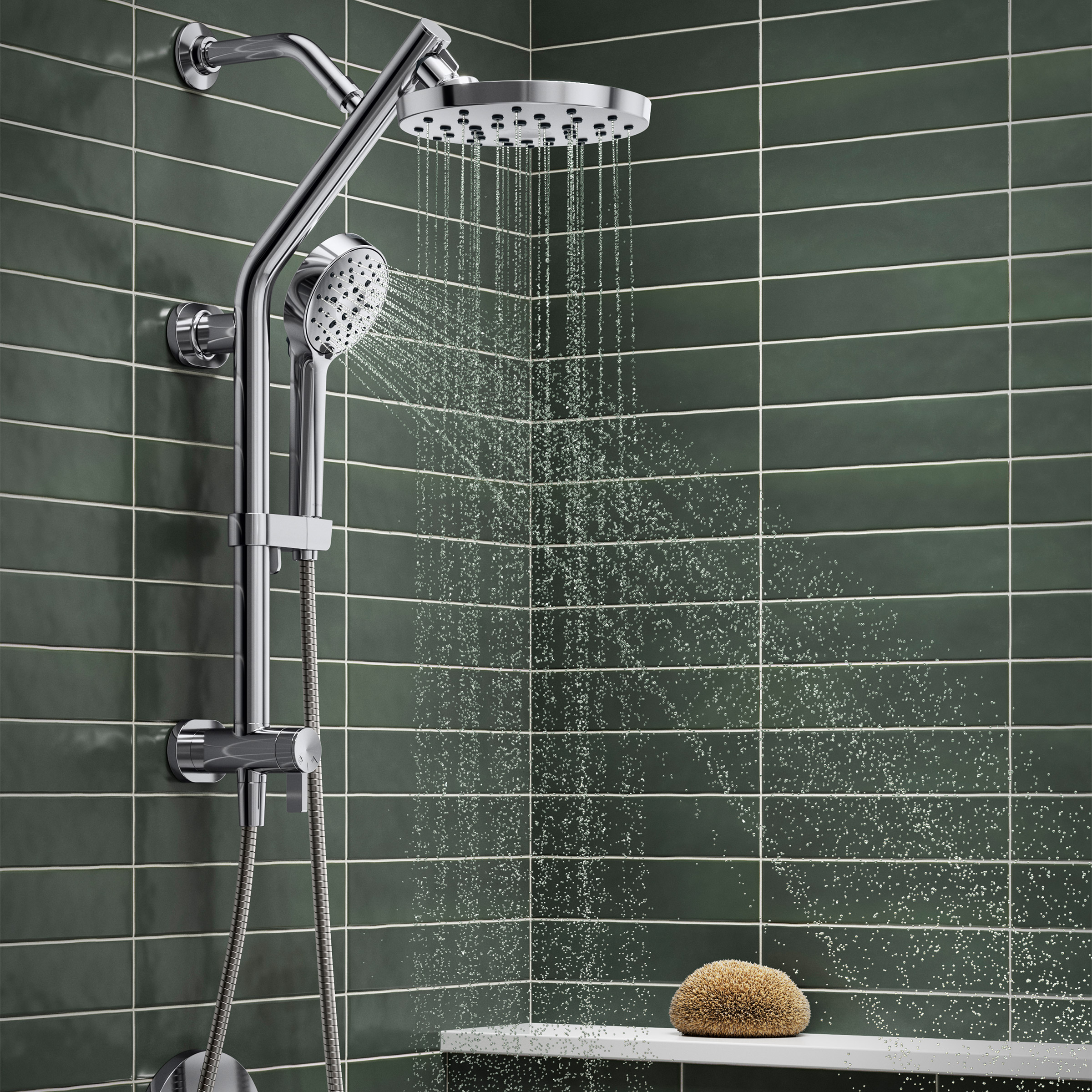 - Includes Handshower, Pivoting Showerhead, 60" Shower Hose, and Slidebar