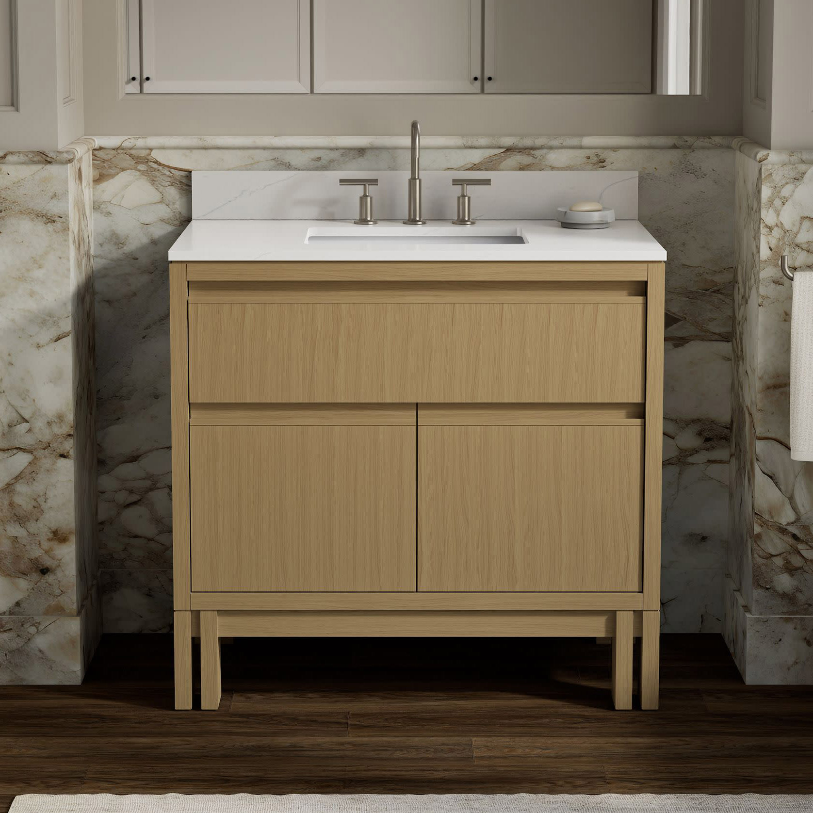 Kohler Solive Bathroom Vanity with Sink and Quartz Top in Oak