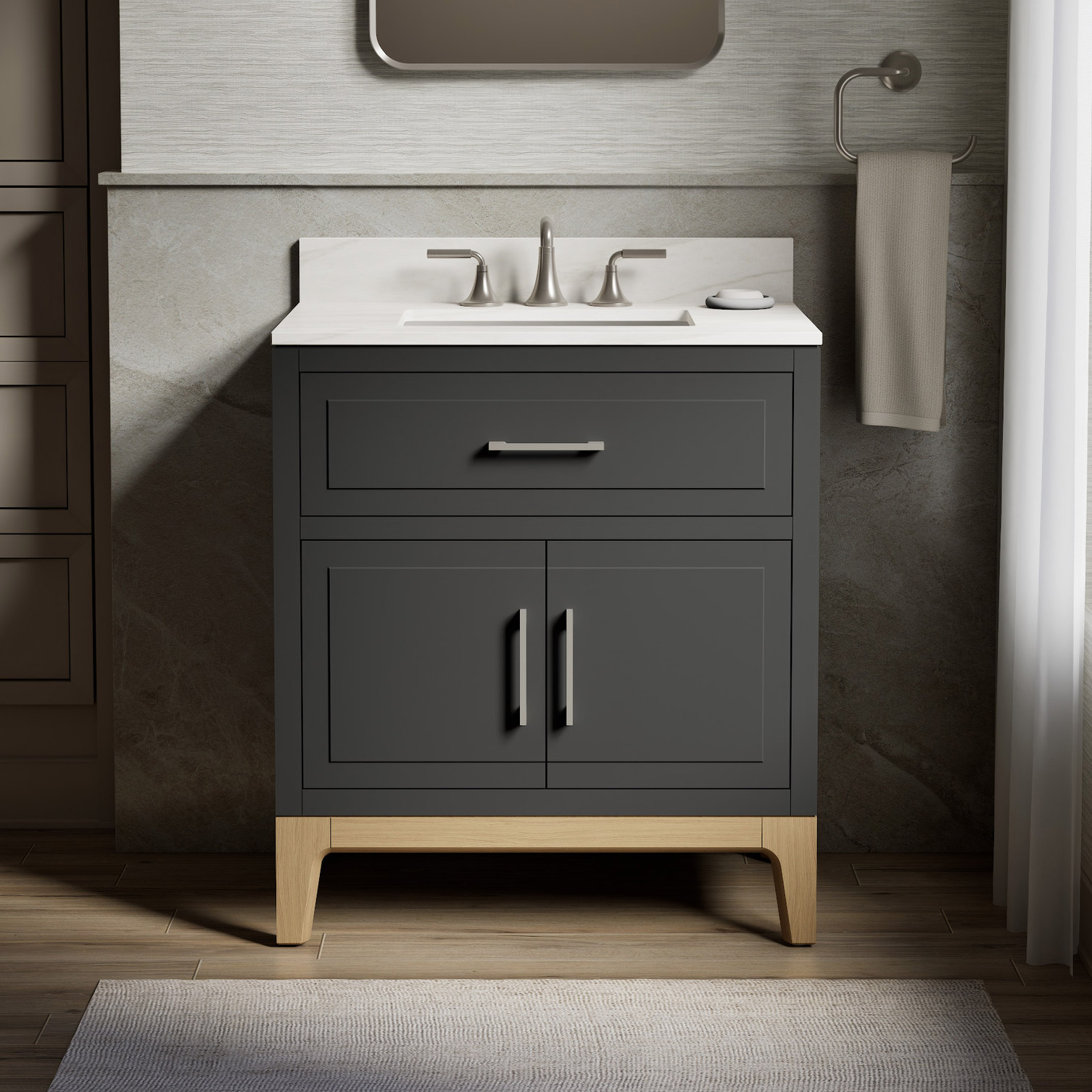Tio Bathroom Vanity Cabinet with Sink and Quartz Top in Gray