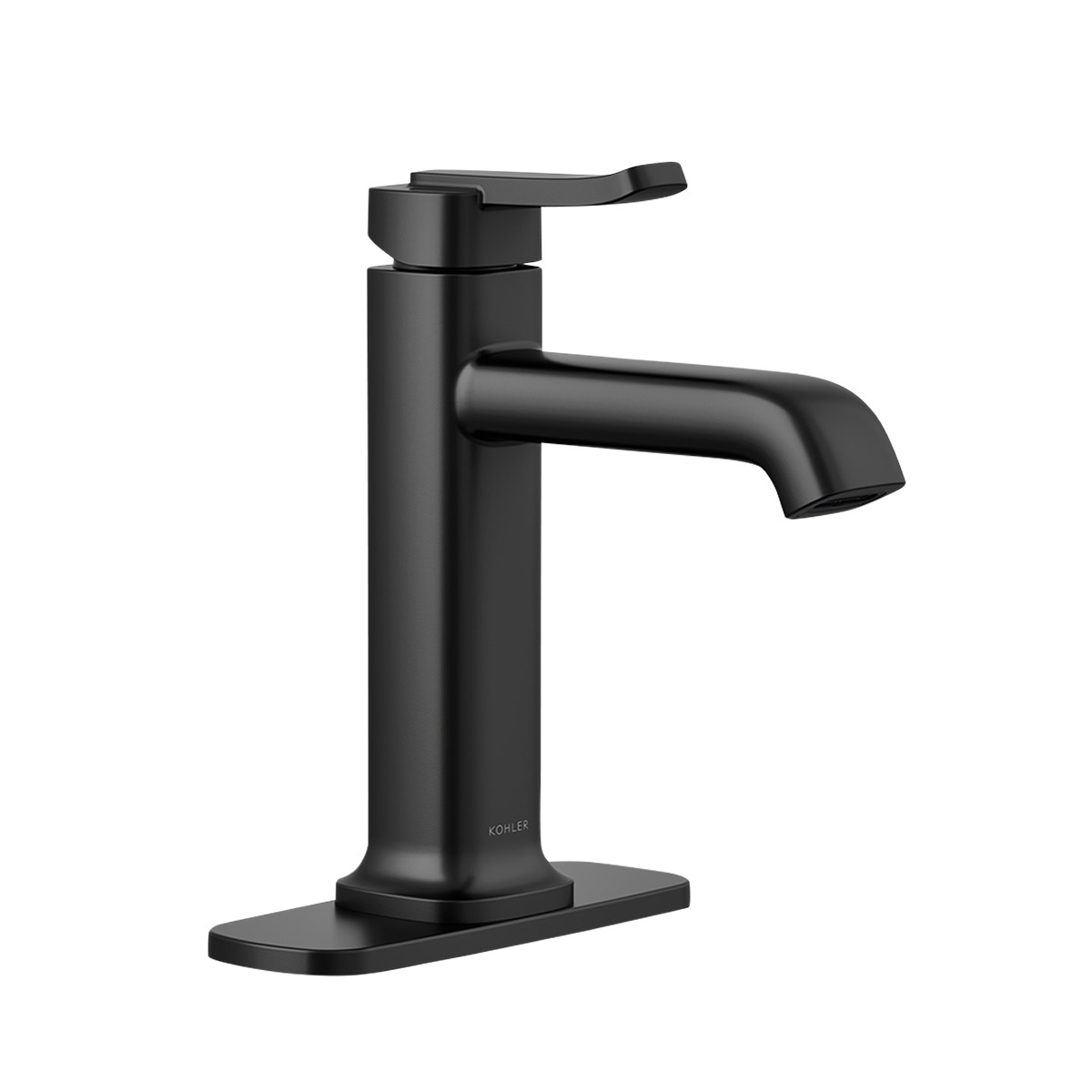 A sophisticated stacking detail and softened square profile give the Cordate bathroom faucet collection a clean, modern look. The single-handle bathroom sink faucet has a slight bending at the handle top and a contoured spout. The blended base detail completes the comfortable aesthetic.