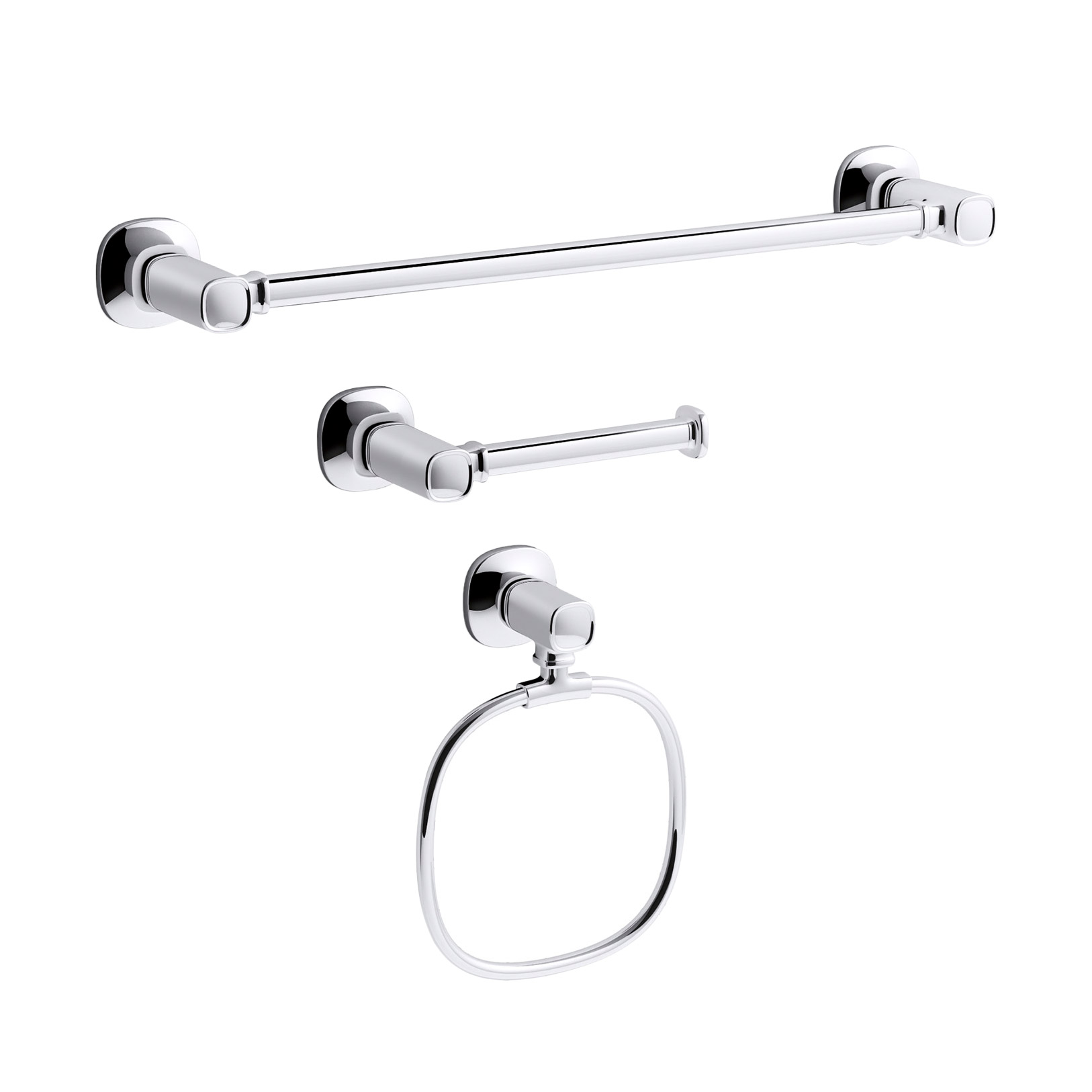 • Coordinating Towel Bar, Towel Ring, and Toilet Paper Holder