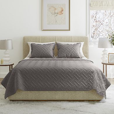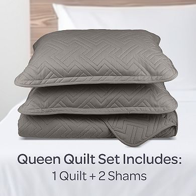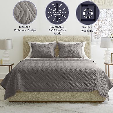 Lavish Home Diamond Embossed Microfiber Queen Quilt & Shams Set