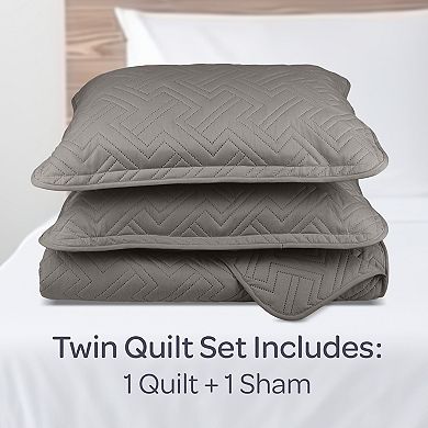 Lavish Home Diamond Embossed Microfiber Twin Quilt & Sham Set