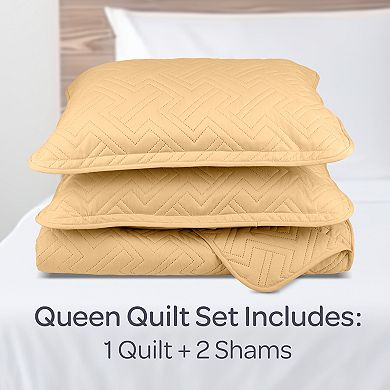 Lavish Home Diamond Embossed Microfiber Queen Quilt & Shams Set