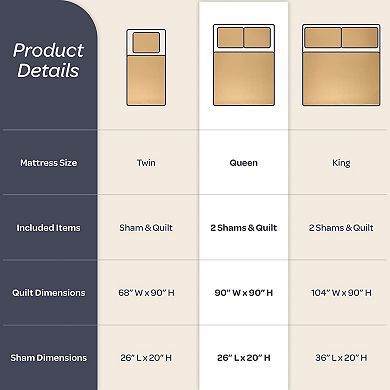 Elevate your sleep sanctuary with the charming quilt set that’s perfect for adding a touch of style and warmth to any bedroom. The lightweight quilt features a subtle diamond embossed pattern, making it not just a cozy layer for snuggly nights, but also a delightful visual treat that will have you dreaming in style and comfort.