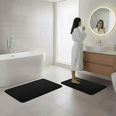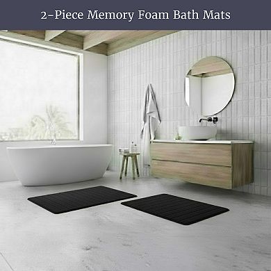 Portsmouth Home 2-piece Memory Foam Striped Bath Mat Set