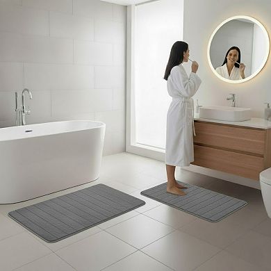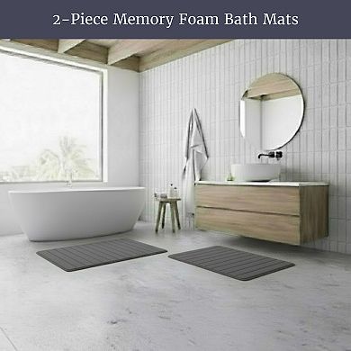 Portsmouth Home 2-piece Memory Foam Striped Bath Mat Set