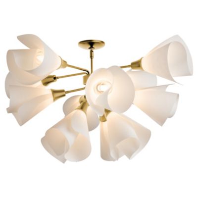 A beautiful silhouette perfect for a range of styles in your home. The Mobius Semi-Flushmount from Hubbardton Forge brings a delicate demonstration of lighting design to the comfort of your favorite spaces. Mounting to the ceiling, this piece starts with a brief downrod that leads to a central disc that extends several matching arms, all made of smooth metal. Each arm ends with a spun-frost paper shade that resembles a floral blossom complete with a single bulb at the center. The light is bright and even, bringing the flowers to life.