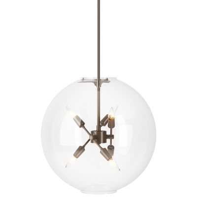 Ultra-modern lighting with a hint of whimsy. The design of the Sfera Pendant by Hubbardton Forge was inspired in part by fireflies captured in a jar. And indeed, the configuration of petite bulbs visible within the substantial glass globe, and their warm twinkle, do evoke the ephemeral flash of lightning bugs. The metal structure that powers the bulbs adds an element of modern industrial design, and it provides a secure suspension for the shade over a dining table or kitchen island.