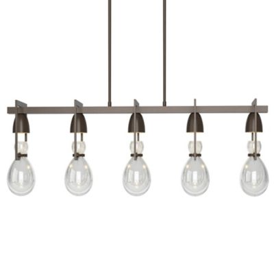The Apothecary Linear Suspension by Hubbardton Forge is inspired by old fashioned Apothecary's and their many bottles and vessels that seem to have a certain romantic quality. A series of hand blown hourglass forms sit cradled in rectangular frames, each lit with a hidden Halogen lamp that shines from above. This creates an intriguing trickle down lighting effect that gives a unique highlight to the translucent glass and shows off its artisan created qualities. Ideal for use over a dining room table, kitchen island or office to add lighting as well as a modern take on a small piece of the past. Made to order in the USA.