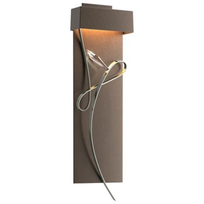 The Rhapsody LED Wall Sconce by Hubbardton Forge embodies the elegant, whimsical nature of music in its uniquely organic construction. The design consists of a single Steel ribbon that bends and curls around a Swarovski cone-shaped crystal. An upper awning guides light from an integrated LED source down over the crystal and metal, creating a luxurious ambiance that leaves a lasting impression.