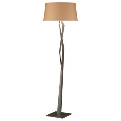 The Hubbardton Forge Facet Floor Lamp has a sharp look for modern interiors. It features a wrought iron stem, hand-forged with jagged, geometric bends accentuated by a variety of finish options. The shade has a complementarily angled flare, and is also available in a range of colors.