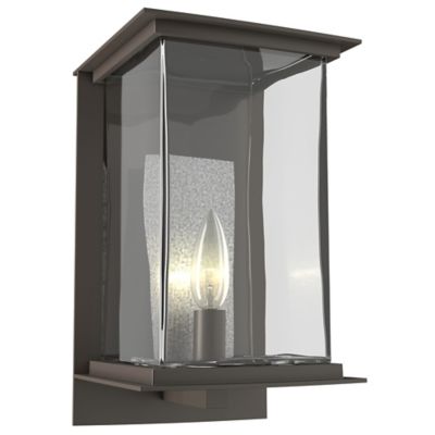 Brighten up your porch, patio, or entryway with the smooth and stylish lines of the Kingston Outdoor Wall Sconce from Hubbardton Forge. A memorable blend of architectural simplicity and traditional notes, each fixture is handcrafted to order in Vermont and uses a rectangular metal wall plate and horizontal ledge coated by a Coastal Outdoor finish to suspend a vertical candelabra-style lamp. This wet-listed lamping is further accented by a steel reflector plate placed behind it, which provides a reflected warmth gentled further by a rectangular shade of carefully crafted blown glass that wraps around it.